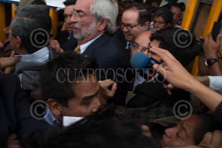 CIUDAD DE MÉXICO, 12SEPTIEMBRE2018.- Enrique Graue, rector de la UNAM, acudió al CCH Azcapotzalco, uno de los 6 planteles que permanecen en paro, luego de los ataques violentos por parte de los porros el pasado 3 de septiembre. Al salir alumnos comenzaron a lanzar piedras, ya que Grau no firmo el pliego petitorio de la comunidad estudiantil. FOTO: ANDREA MURCIA /CUARTOSCURO.COM