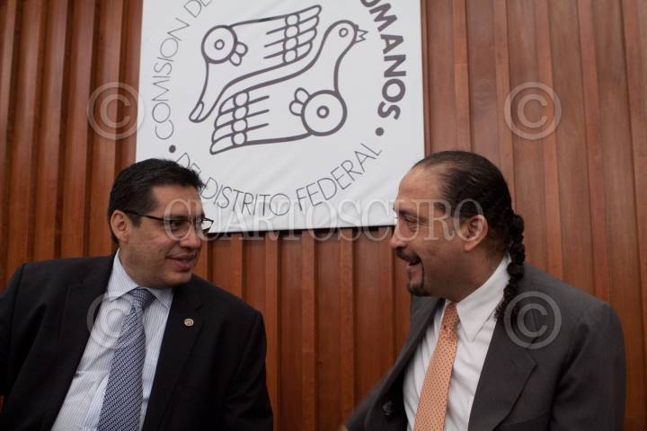 MÉXICO, D.F., 28JULIO2011.- Luis González Plascencia, presidente de la Comisión de Derechos Humanos del DF, y Javier Hernández Valencia, comisionado de la ONU en materia de Derechos Humanos para México, inauguraron el foro "Violencia armada en México: violaciones graves de los derechos humanos" y una exposición fotográfica del mismo nombre, la cual esta conformada con fotografías de la Agencia Cuartoscuro, la cual esta albergada en la sede de la CDHDF. FOTO: MOISÉS PABLO/CUARTOSCURO.COM