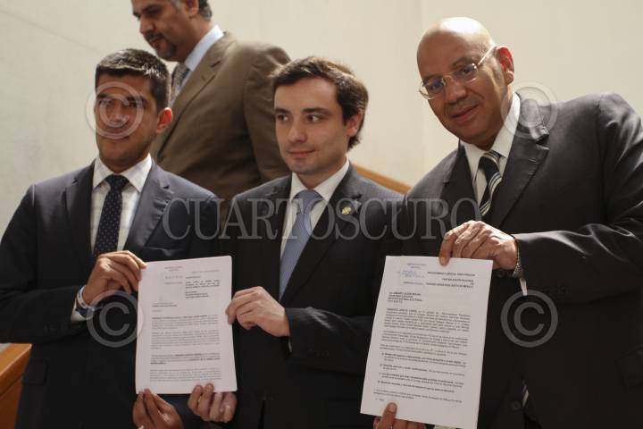 MÉXICO, D.F., 09ABRIL2015.- Fernando Rodríguez Doval, Juan Pablo Adame Alemán y Francisco Gárate Fraguas en representación del Partido Acción Nacional, solicitan al Instituto Nacional Electoral le retire el registro al Partido Verde Ecologista de México, por que ha cometido reiteradas faltas graves a ley. Sustentado en el artículo 456 de la Ley Electoral, el cual sanciona con el retiro del registro a los partidos que cometen faltas graves y reiteradas a la Constitución y a la ley. FOTO: ISABEL MATEOS /CUARTOSCURO.COM
