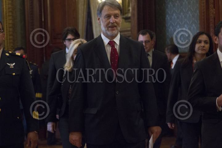 CIUDAD DE MÉXICO, 07MARZO2017.- Ernesto Cordero, senador del PAN, y Rogelio Granguillhome embajador de Alemania, se saludan al finalizar la toma de protesta de tres embajadores; Alemania, Reino Unido y Grecia. FOTO CUARTOSCURO.COM
