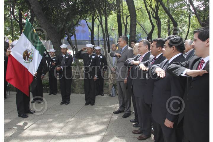 MÉXICO, D.F., 27FEBRERO2012.- Elementos de la Secretaria de Marina y Armada de México e integrantes de la representación del gobierno de Tabasco, montaron una guardia de honor en el monumento del coronel Greg Mendez ubicado en el cruce del Paseo de la Reforma e Insurgentes. FOTOS: SAÚL LÓPEZ /CUARTOSCURO.COM