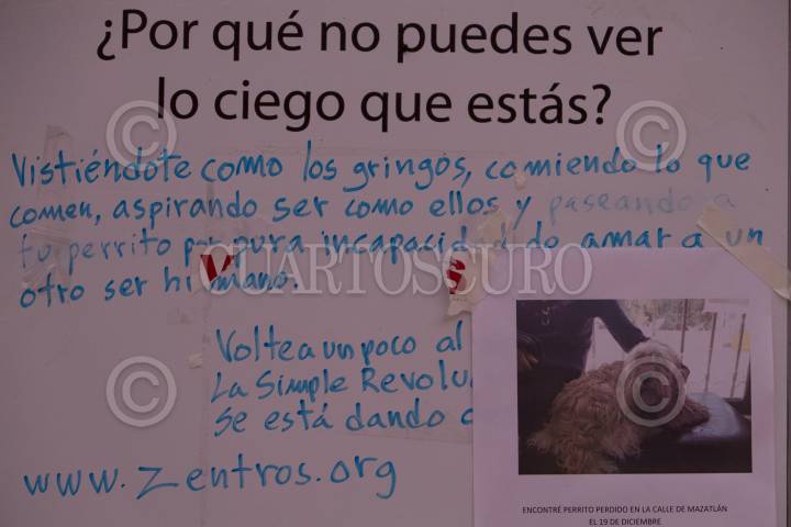 MÉXICO, D.F., 31DICIEMBRE2012.- Sobre el camellon de la calle Mazatlán en la colonia Condesa, un letrero que llama la atención a los transeuntes capitalinos, en este último día del 2012. FOTO: PEDRO VALTIERRA /CUARTOSCURO.COM