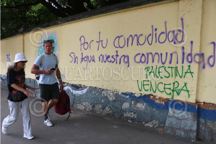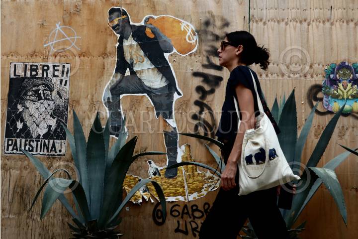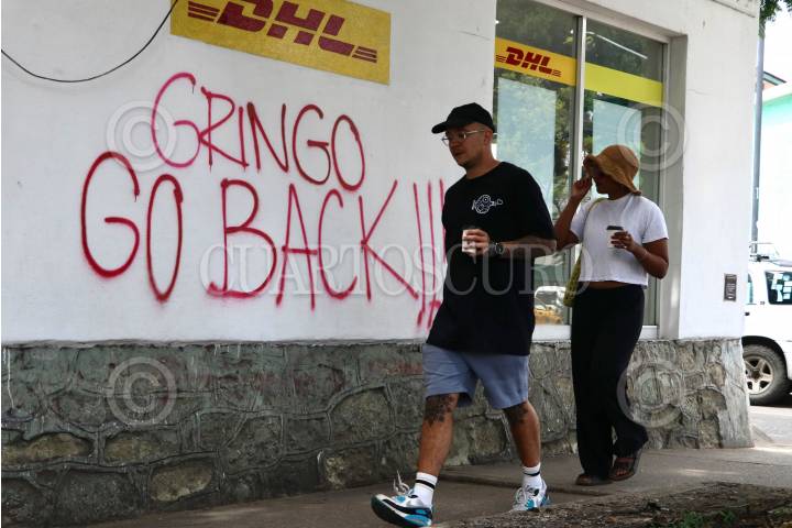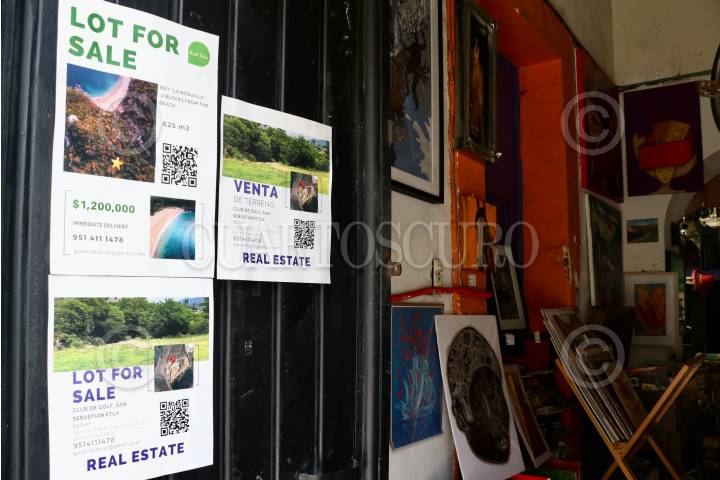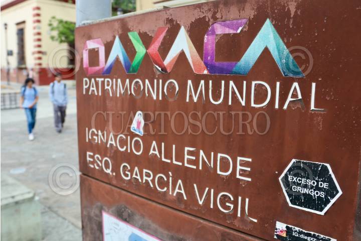 OAXACA, OAXACA, 18AGOSTO2024.- En Oaxaca las paredes hablan y son una muestra del sentir de la sociedad respecto a la gentrificación que crece cada día en la ciudad capital. Entre carteles que ofrecen servicios, bienes raíces y anuncian galerías o talleres, principalmente en inglés, se encuentra arte urbano que denuncia el encarecimiento de servicios, la falta de agua que viven pobladores locales, el encarecimiento del alquiler y vivienda, entre otras causas de este fenómeno social que ha ido cambiando el contexto de la ciudad. FOTO: CAROLINA JIMÉNEZ/CUARTOSCURO.COM