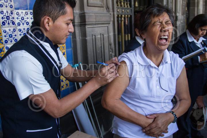 MÉXICO, D.F., 08ENERO2014.- Personas se vacunan contra la influenza en un puesto colocado afuera de las oficinas del Antiguo Palacio del Ayuntamiento. FOTO: ISAAC ESQUIVEL /CUARTOSCURO.COM