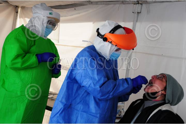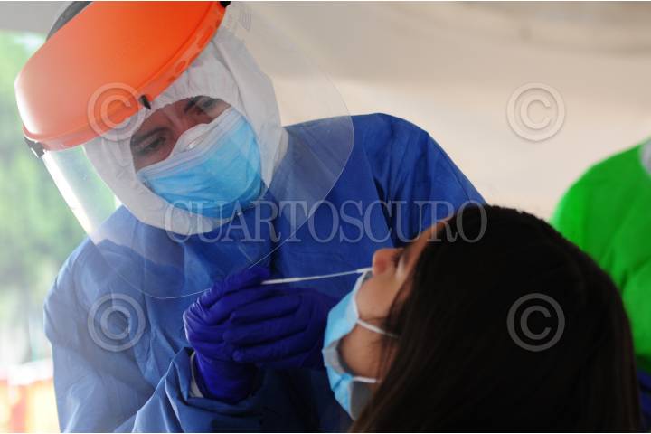 Médicos realizan la prueba Covid-19 a un posible contagiado.