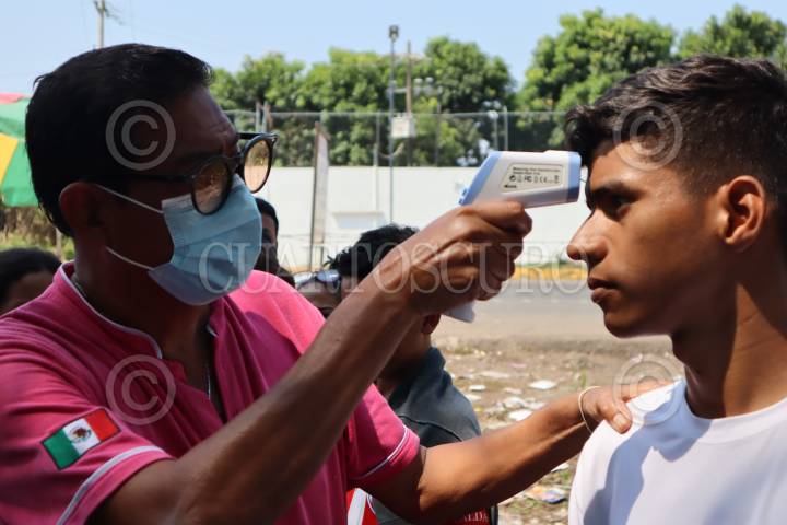 Personal médico de la Unidad Médica Número 7 de Tapachula, brindó atención medica a las personas que padecen malestar en la garganta y gripe en el campamento migrante