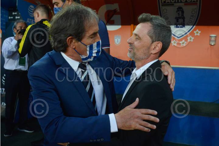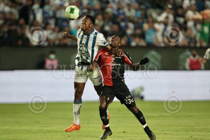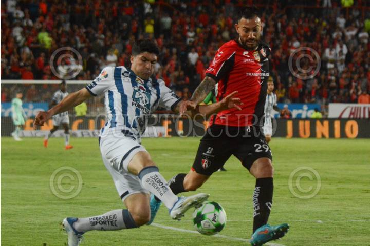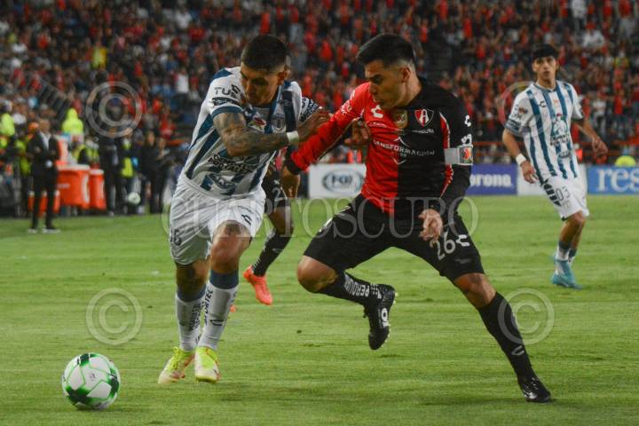 Víctor Guzmán de Pachuca y Aldo Rocha del Atlas durante el partido por el campeonato del torneo Clausura 2022 de la Liga MX Grita México entre Pachuca vs Atlas en el Estadio Hidalgo.
