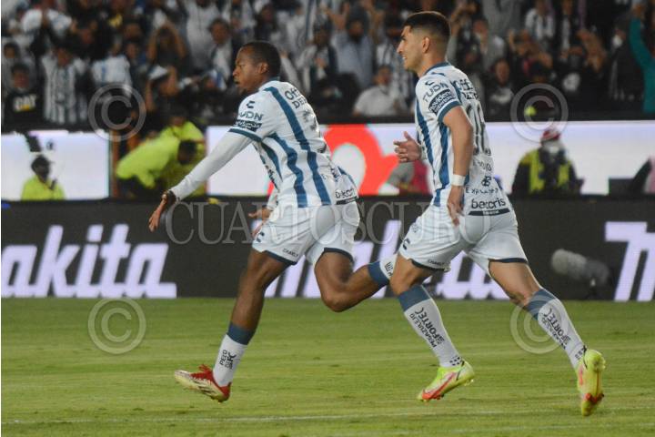 Romario Ibarra, festeja su anotación frente al Cruz Atlas, en partido de vuelta de la final de la Liga Grita México C22 de la Liga BBVA MX.