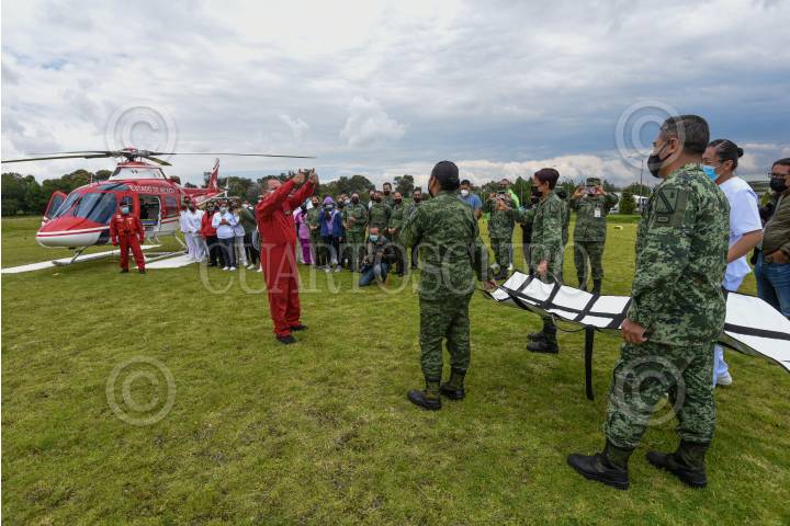 Se llevó a cabo el curso de “Evacuación Aeromédica” que de manera conjunta Secretaría de la Defensa Nacional SEDENA, el Hospital Militar de Zona de Santa María Rayón y de la Unidad de Rescate Aéreo del Estado se México “Relámpagos” impartió a 100 asistentes pertenecientes al área de salud.