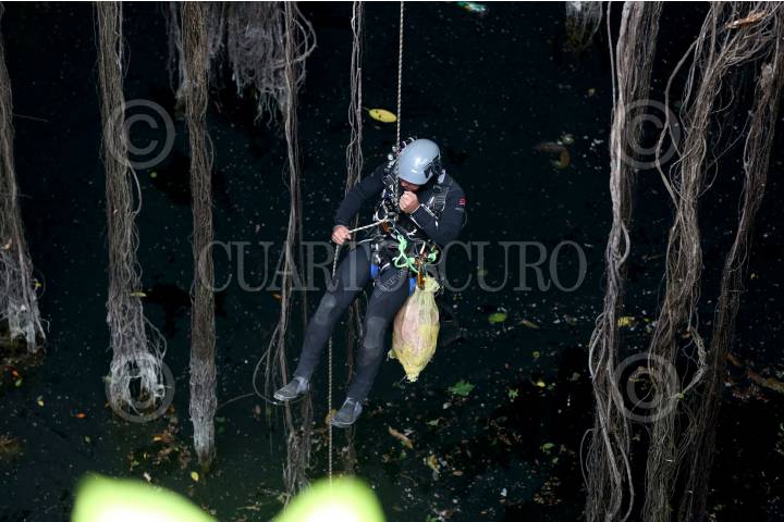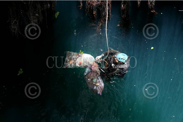 Un grupo de buzos retiraron 138 kilogramos de basura entre plásticos, llantas y baterías de un cenote de la comunidad de Chankom, como parte de la "Estrategia de Saneamiento Integral de Grutas y Cenotes de Yucatán" que lleva acabo el Gobierno del Estado con organizaciones de la sociedad civil.