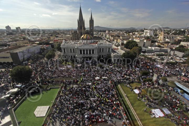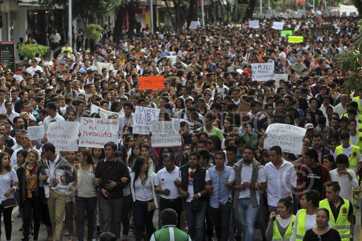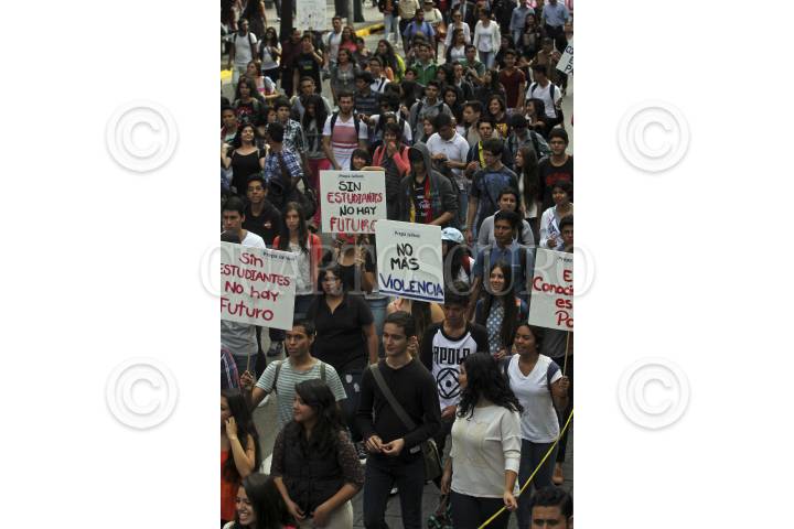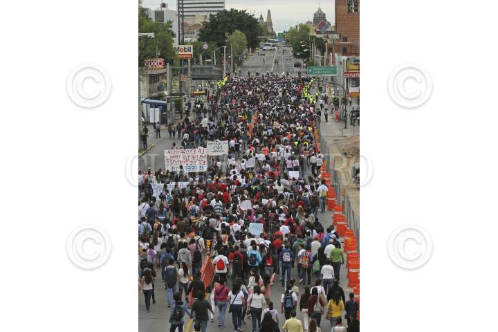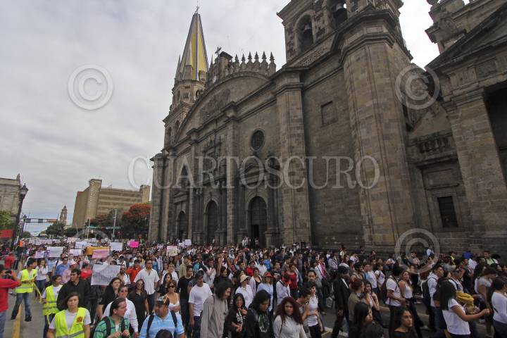 GUADALAJARA, JALISCO, 22OCTUBRE2014.- La Federación de Estudiantes Universitarios (FEU), académicos y estudiantes de la Universidad de Guadalajara, así como la sociedad en general realizaron una marcha en contra de los hechos violentos que se viven en el País, la movilización se llevo a cabo de diversos puntos de la zona metropolitana como la Normal, la Fuente Olímpica y la Plaza de la Bandera, todas estas con un mismo destino, la Rectoría y Edificio de la Universidad de Guadalajara (UdeG). FOTO: FERNANDO CARRANZA GARCIA /CUARTOSCURO.COM