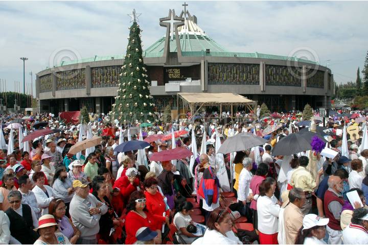 MÉXICO D.F., 12ENERO2008.- Cientos de fieles presencian la misa que se realizo en el atrio de la Basílica de Guadalupe después de haber realizado una peregrinación de la Arquidiócesis de México. FOTO: RODOLFO ANGULO/CUARTOSCURO.COM