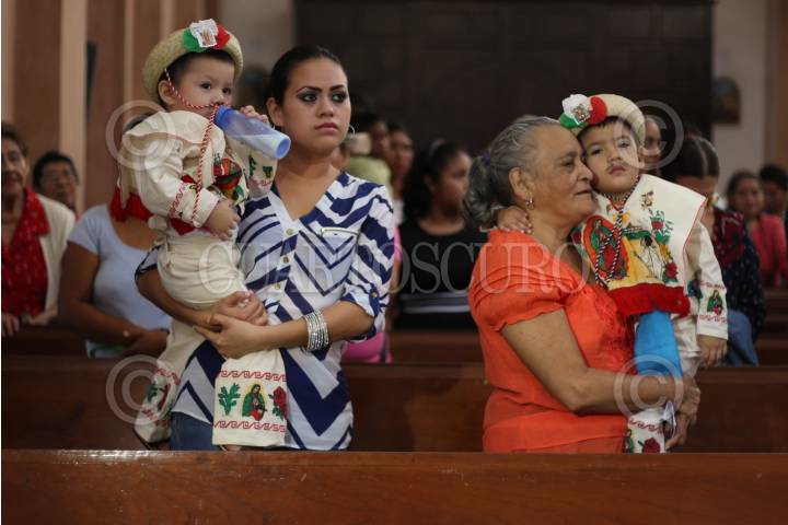 VERACRUZ, VER., 12DICIEMBRE16.- La mañana de este lunes, familias veracruzanas asistieron a la Catedral con sus hijos vestidos de inditos como parte de las celebraciones del 485 aniversario de la aparición de la Virgen de Guadalupe en el cerro del Tepeyac. FOTO: ILSE HUESCA /CUARTOSCURO.COM