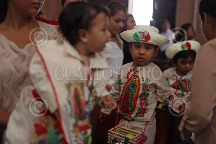 En el día de la Guadalupana fieles católicos acudieron al santuario de Guadalupe en Campeche en compañía de sus hijos a quienes vistieron de Juan dieguitos y de María en forma de agradecimiento por la salud y refrendando su fe ante la virgen María.