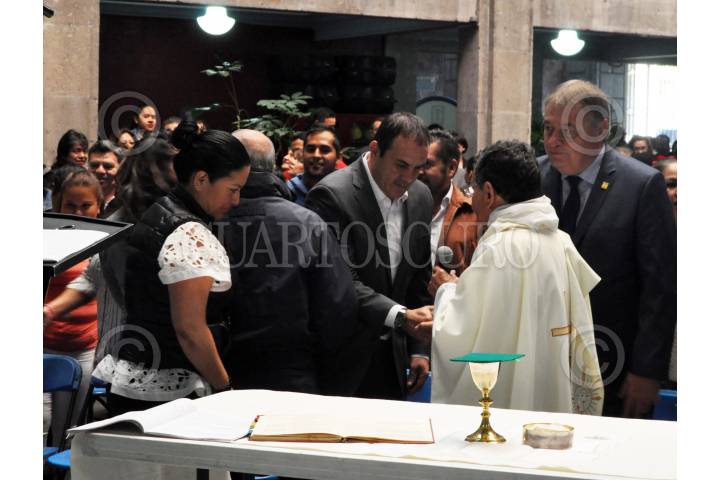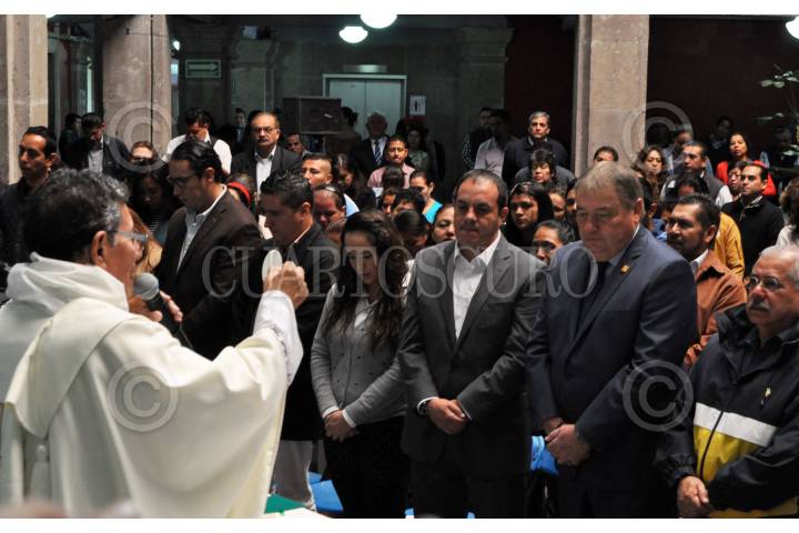 CUERNAVACA, MORELOS, 12DICIEMBRE2018.- El gobernador, Cuauhtémoc Blanco Bravo, presente en la misa que en honor a la Virgen de Guadalupe se realizó en el interior del Palacio de Gobierno. FOTO: CORTESIA /CUARTOSCURO.COM
