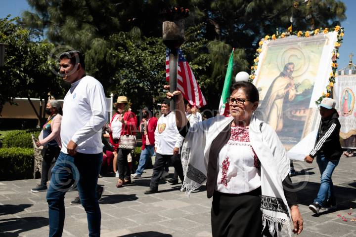 SAN ANDRÉS CHOLULA, PUEBLA, 26SEPTIEMBRE2023.- La Antorcha Guadalupana llegó a san Andrés Cholula, como parte de los municipios que visita en el estado de Puebla previo a continuar su trayecto rumbo a la Catedral de San Patricio en Nueva York. FOTO: MIREYA NOVO/CUARTOSCURO.COM