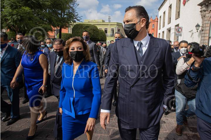 Mauricio Kuri, gobernador de Querétaro, y Guadalupe Murguía Gutiérrez, secretaria de gobierno de Querétaro, acudieron al Palacio de Gobierno para tomar protesta al nuevo gabinete.