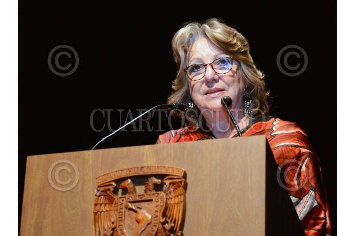 Guadalupe Valencia García, coordinadora de Humanidades, durante la entrega del reconocimiento Sor Juana Inés de la Cruz a mujeres integrantes de la UNAM.