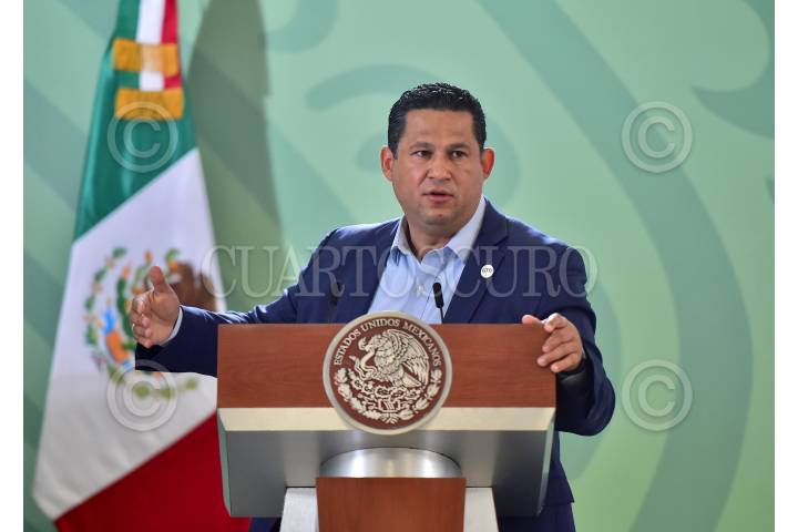 Diego Sinhue, gobernador de Guanajuato; durante la mañanera en Irapuato.
