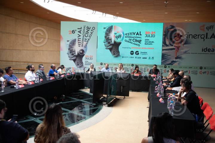 Inauguración del Foro SinergIA donde se discutren las implicaciones del uso de la Inteligencia Artificial en la creación filmica y otras ramas creativas, dentro del marco de la 26va edición del GIFF, en León Guanajuato.