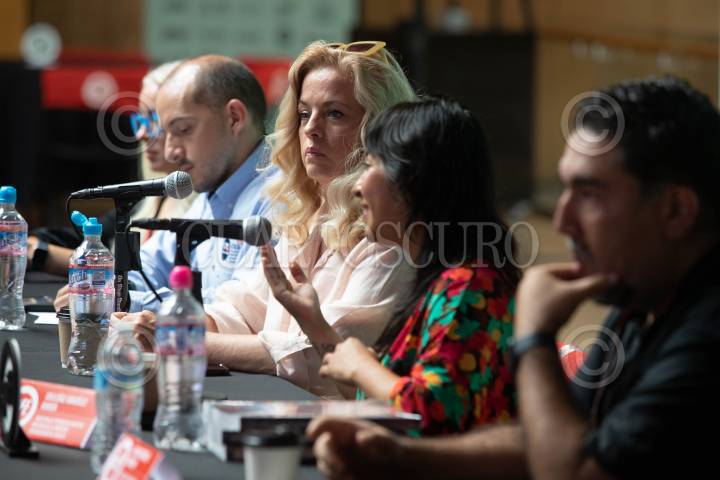 Sarah Hoch, Directora del GIFF durante la inauguración del Foro SinergIA donde se discutren las implicaciones del uso de la Inteligencia Artificial en la creación filmica y otras ramas creativas, dentro del marco de la 26va edición del GIFF, en León Guanajuato.