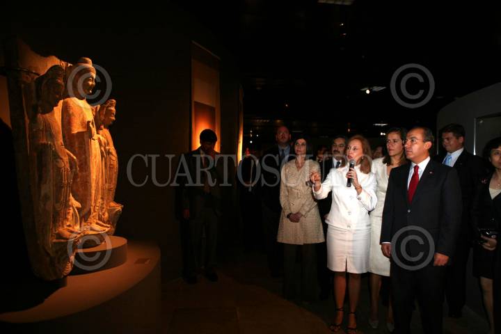 MONTERREY, NUEVO LEON, 21SEPTIEMBRE2007.- Margarita Zavala, Felipe Calderón Hinojosa, Presidente de México y Yin Hengmin, embajador de China, durante la inauguración del Museo Noreste que alberga la exposición "Buda Guanyin" en el marco del Forum Universal de las Culturas. FOTO: ALFREDO GUERRERO/CUARTOSCURO.COM