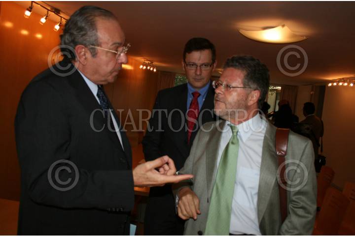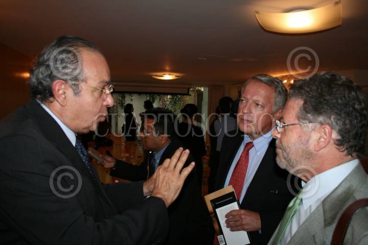 MÉXICO, D.F., 24JUNIO2008.-Hector Aguilar Camil, Francisco Reyes Heroles y Sergio Sarmiento en conferencia de prensa sobre "El estado que guarda el amparo de escritores academicos y periodistas". FOTO:RICARDO CASTELAN/CUARTOSCURO.COM