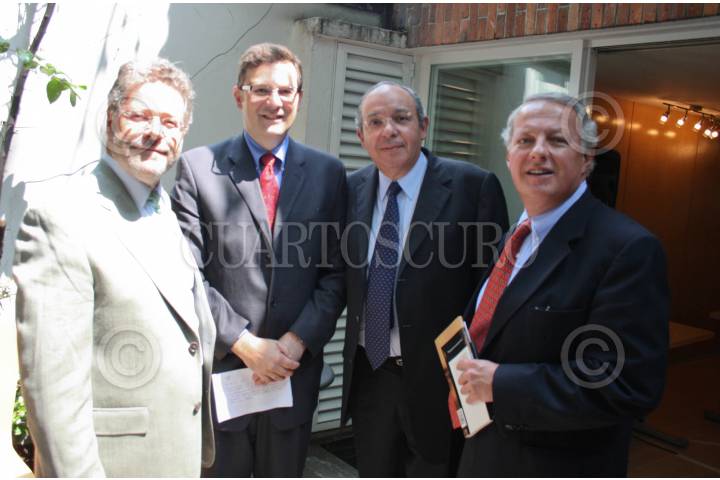 MÉXICO, D.F., 24JUNIO2008.- Sergio Sarmiento, Leo Zuckermann, Hector Aguilar Camin y Federico Reyes Heroles, en conferencia de prensa sobre "El estado que guarda el amparo de escritores academicos y periodistas". FOTO:RICARDO CASTELAN/CUARTOSCURO.COM
