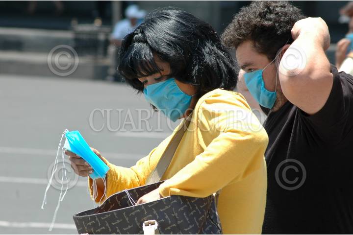 MÉXICO D.F., 29ABRIL2009.- Una mujer guarda unos cubre bocas después de que estos fueron regalados en la plancha del Zócalo capitalino. Actualmente los cubre bocas son usados para evitar el contagio del virus de la influenza porcina y se encuentran prácticamente agotados en las farmacias de la ciudad. FOTO: RODOLFO ANGULO/CUARTOSCURO.COM
