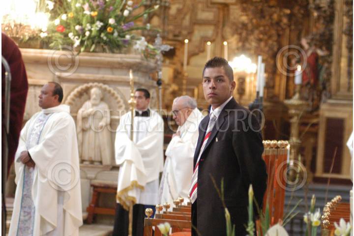 MÉXICO D.F. 05ABRIL2007.- El cardenal Norberto Rivera es vigilado por un grupo de guardaespaldas durante le misa del lavatorio de pies. FOTO: GERMÁN ROMERO/CUARTOSCURO.COM