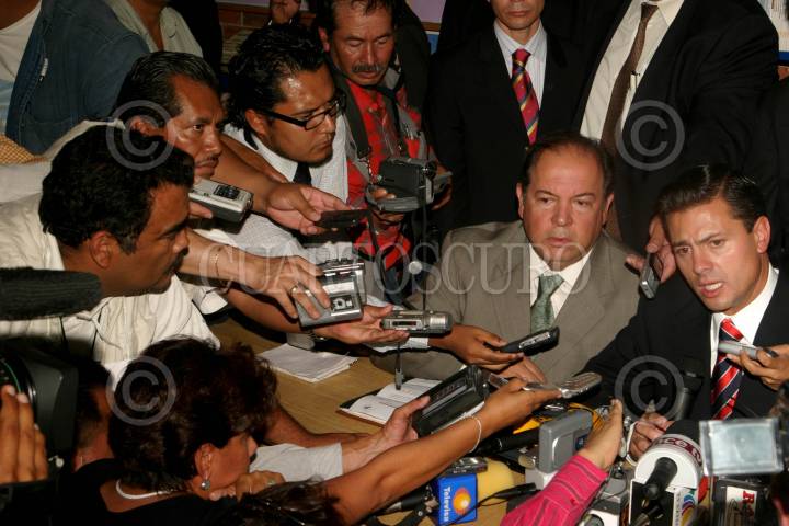 VALLE DE CHALCO, ESTADO DE MÉXICO 11MAYO2007.- El gobernador del Estado de México, Enrique Peña Nieto, ofreció una conferencia de prensa donde descartó que haya sido un atentado en contra de su familia el enfrentamiento donde perdieron la vida cuatro de sus guardaespaldas que vigilaban a sus hijos en el malecón del puerto de Veracruz. FOTO: SAÚL LÓPEZ/CUARTOSCURO.COM