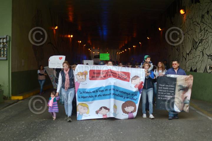 XALAPA, VERACRUZ, 13FEBRERO2019.- Padres de familia y docentes marcharon por las calles de la ciudad en pro de las estancias infantiles subrogadas del IMSS, la protesta se replicó en distintos estados de la República, hace más de una semana el Jefe del Ejecutivo anunció que el gobierno federal ya no iba a dar más recursos a este tipo de instituciones por que en su administración había muchos anomalías, sin embargo, se les daría 1600 pesos cada dos meses a las familias que tuvieron un hijo en edad de ocupar una guardería, a pesar de esto en diferentes estados han protestado contra esta medida. FOTO: ALBERTO ROA /CUARTOSCURO.COM