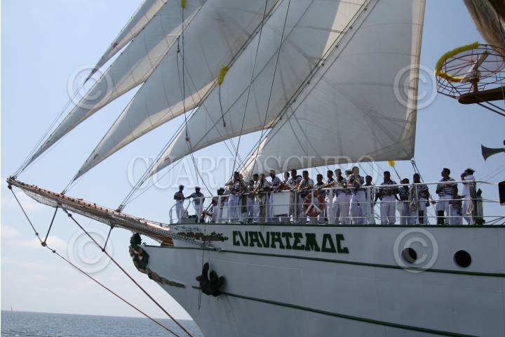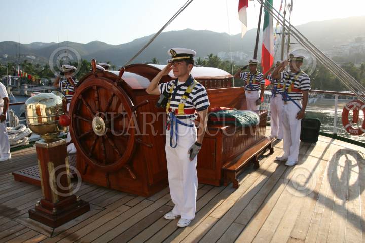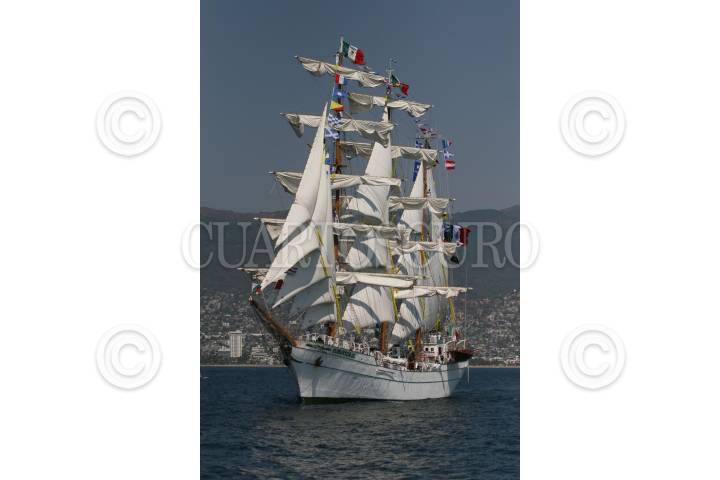 ACAPULCO, GUERRERO 15FEBRERO2009.- Esta mañana zarpó el buque escuela de la Armada de México “Cuauhtémoc” con 260 tripulantes abordo y 99 Guardiamarinas recientemente egresados de la heroica Escuela Naval Militar, para dar inicio al crucero de instrucción denominado “Japón 2009” que aproximadamente tendrá una duración de mas de 5 meses. FOTO: GUILLERMO PEREA/CUARTOSCURO.COM