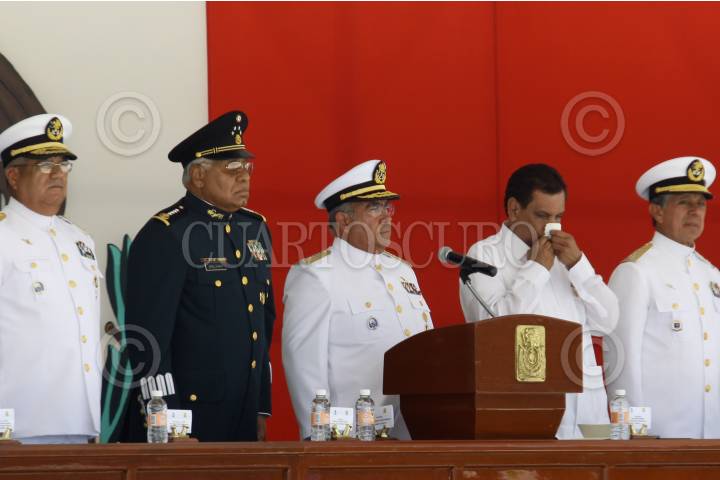ANTÓN LIZARDO, VERACRUZ, 30JULIO2010.- El general Guillermo Galvan, secretario de la Defensa Nacional; el Almirante Francisco Saynez, secretario de Marina y Fidel Herrera, gobernador del estado hicieron entrega de reconocimientos y condecoraciones a los 92 Guardiamarinas que se graduaron de la Heroica Escuela Naval Miliar de la generación 2005 - 2010. FOTO: RODOLFO ANGULO/CUARTOSCURO.COM