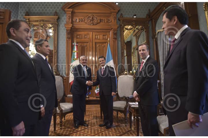 MÉXICO, D.F., 13MARZO2015.- El Presidente de México, Enrique Peña Nieto, se reunió hoy con su homólogo de la República de Guatemala, Otto Pérez Molina, en el Palacio Nacional, donde dialogaron sobre diversos temas de la relación bilateral, a fin de fortalecer los lazos entre ambas naciones. En el encuentro participaron los cancilleres José Antonio Meade Kuribreña, de México, y Carlos Raúl Morales Moscoso, de Guatemala, así como el Secretario de Gobernación, Miguel Ángel Osorio Chong, y su homólogo de la vecina nación, Mauricio López Bonilla. FOTO: PRESIDENCIA /CUARTOSCURO.COM