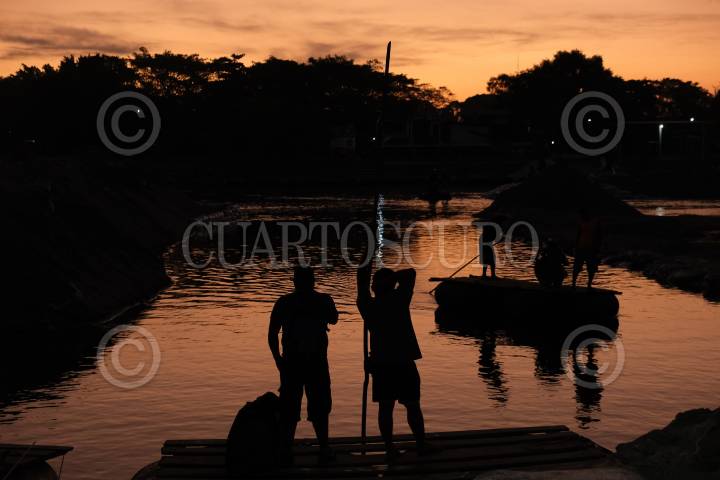 Balseros y comerciantes guatemaltecos y mexicanos continúan sus labores diarias desde muy tempranas horas.