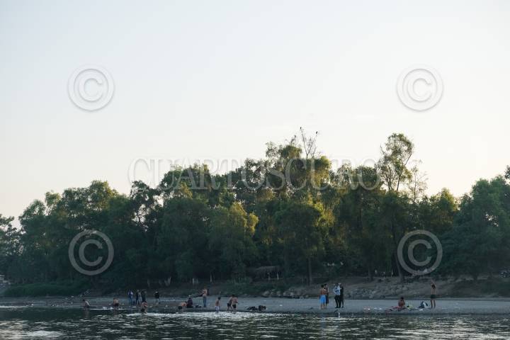 Migrantes Centroamericanos esperan a la orilla del Río Suchiate la salida de la Caravana para continuar su camino hacia Estados Unidos.