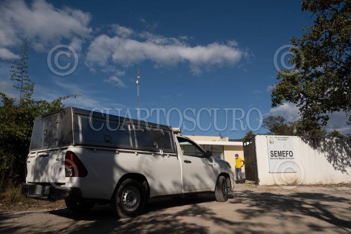 Integrantes de la Agencia de Inteligencia Criminal de acuerdo a algunos logos que portaban en sus uniformes arribaron a la SEMEFO de la capital del estado, lugar en el que se encuentran algunos de los cuerpos de los migrantes que fallecieron en el accidente de tránsito el pasado 9 de diciembre en el que perdieron la vida 55 personas.