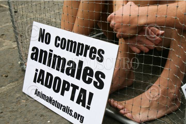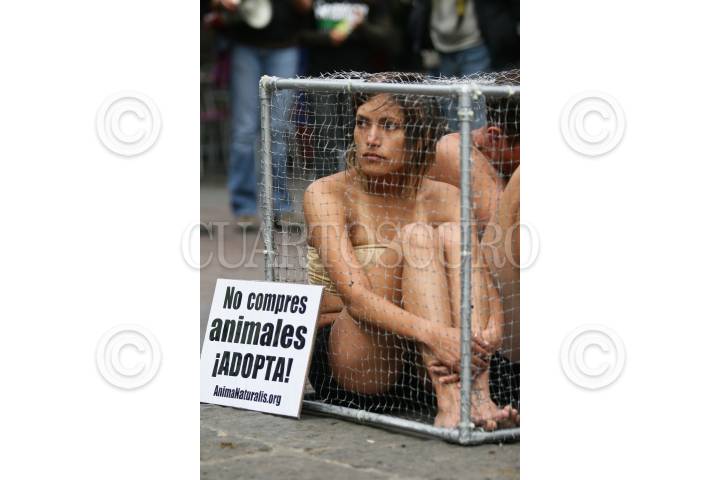 MÉXICO, D.F., 05ENERO2010.- Activistas de la organización Anima Naturalis se manifestaron en contra de la compra de mascotas; argumentaron que es mejor adoptarlas durante esta fecha de regalos de Reyes Magos. FOTO: ISAAC ESQUIVEL/CUARTOSCURO.COM