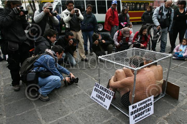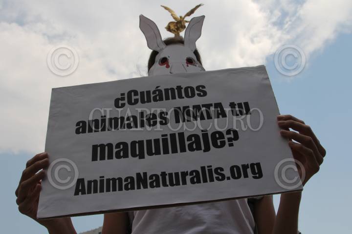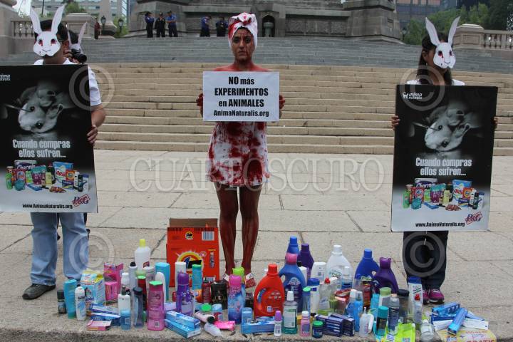 MÉXICO, D.F., 15MAYO2011.- Intehrantes de la organización ambientalista AnumanNaturalis se manifestarion en la glorieta del Ángel de la Independecia para exigir no se usen a los animales en pruebas para los productores humanos. FOTO: ENRIQUE ORDÓÑEZ/CUARTOSCURO.COM