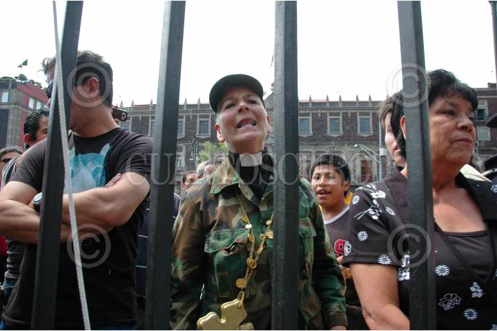 MÉXICO, D.F. 07MARZO2010.- Integrantes de la Resistencia Civil protestaron desde afuera del atrio de la Catedral Metropolitana durante el evento en donde el cardenal Norberto Rivera Carrera acudió a una celebración por el Día de la Familia. FOTO: RODOLFO ANGULO/CUARTOSCURO.COM