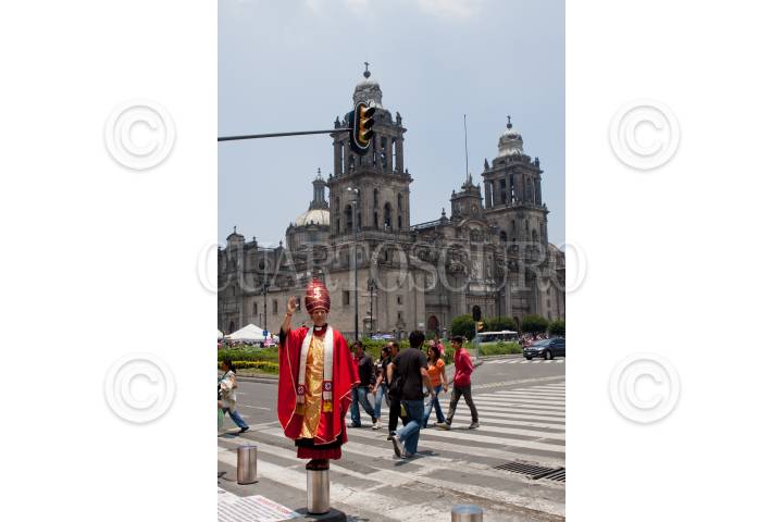 MÉXICO, D.F., 23JULIO2011.- Julia Klug mejor conocida como "la güera", se manifestó en contra de los crímenes de pederastia que ha cometido la iglesia católica en contra de la sociedad mexicana. Esta activista ha sido reprimida de la catedral por la policía en varias ocasiones, por lo que ha tenido que trasladar sus manifestaciones en la calle de Madero en el centro Histórico. FOTO: MOISÉS PABLO/CUARTOSCURO.COM