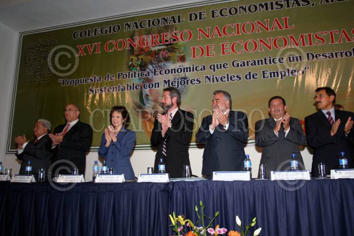 MEXICO, D.F., 01MARZO2006.- María Marcela Gonzàlez Salas y Petricioli, presidenta de la mesa directiva de la Cámarade Diputados, en compañìa de Alejandro Encinas, jefe de gobierno y Oscar M. Guera Ford, presidente del Colegio Nacional de Economistas durante la inauguraciòn del XVI Congreso Nacional de Economistas en el centro de convenciones "Expo Reforma". FOTO: Rocío ortiz/CUAROSCURO.COM