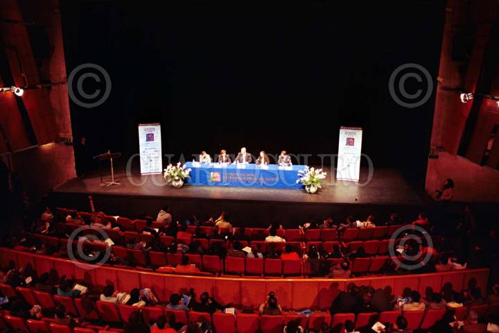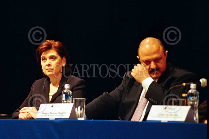 Sara Bermudez, presidenta CONACULTA y Reyes Tamez, secretario de Educación durante la Cuarta Bienal de Radio en las instalaciones del centro Nacional de las Artes. FOTO: Susana Navarrete/CUARTOSCURO.COM