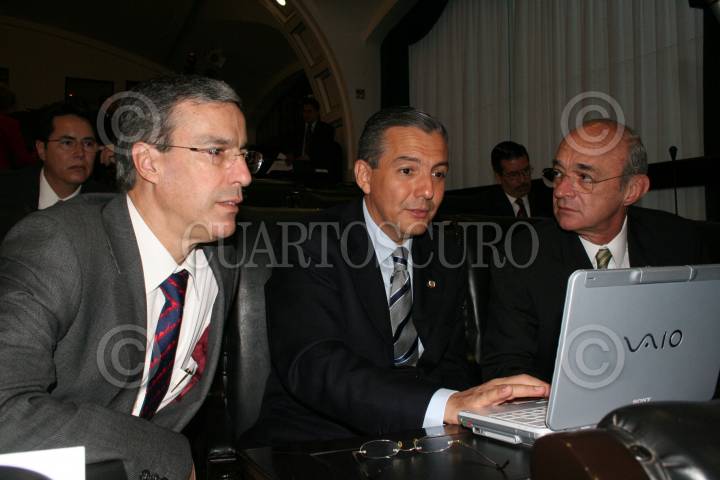 MÉXICO, D.F. 5SEPTIEMBRE2006.- José González Morfin, Jesús Heriberto Félix Guerra Y Fernando Elizondo Barragán, legisladores panistas observan una animación minutos antes del inicio de la sesión en la cámara de senadores. FOTO: PAOLA HIDALGO/CUARTOSCURO.COM