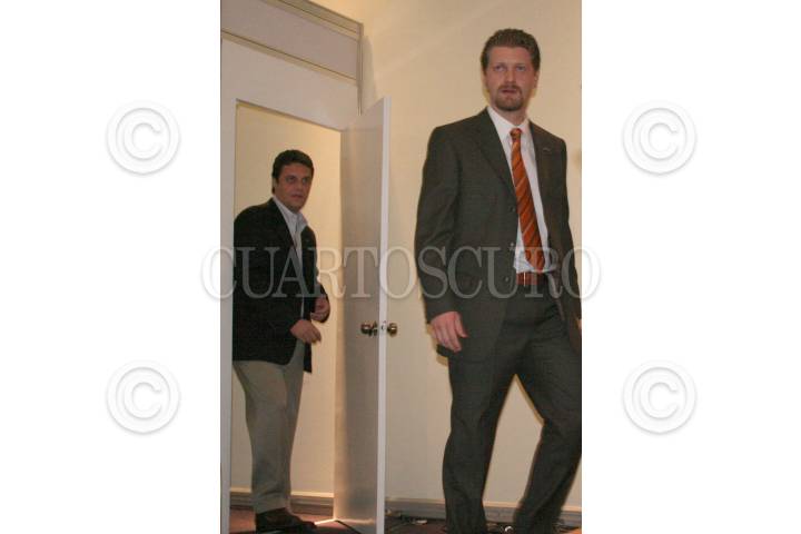 MÈXICO, D.F. 02JULIO2006.- Alberto Begnè Guerra, presidente del partido Alternativa y Luciano Pasco, coordinador de comunicaciòn social, minutos despuès de haber anunciado la obtenciòn de registro. FOTO: Paola Hidalgo/CUARTOSCURO.COM