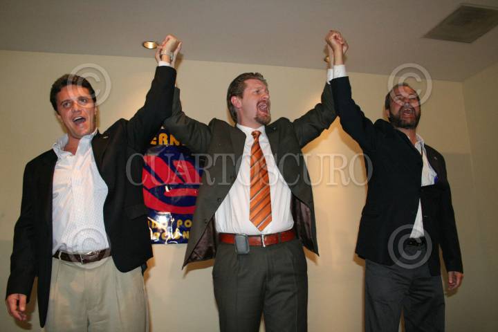 MÈXICO, D.F. 02JULIO2006.- Alberto Begnè Guerra, presidente del partido Alternativa, Jorge Weatley Fernandez, vicepresidente del partido y Luciano Pasco, coordinador de comunicaciòn social, minutos despuès de haber anunciado la obtenciòn de registro. FOTO: Paola Hidalgo/CUARTOSCURO.COM
