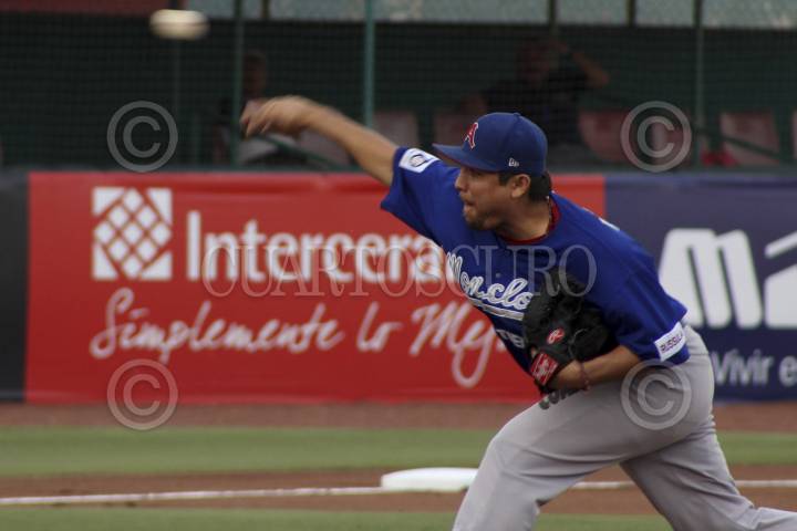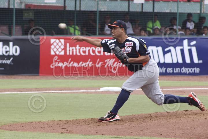 El lanzador Gonzálo Flores de los Diablos Rojos del México durante el partido ante los Guerreros de Oaxaca.