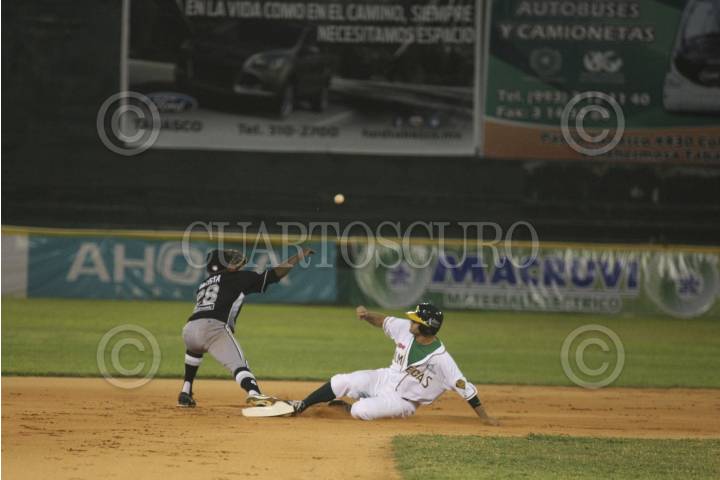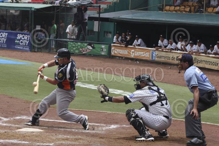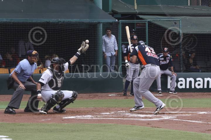 OAXACA, OAXACA, 04AGOSTO2012.- Se lleva a cabo el tercer partido de la serie entre los Guerreros de Oaxaca y los Tigres de Quintana Roo, dicho encuentro tuvo que ser suspendido por lluvia el pasado viernes en la cuarta alta cuando los bélicos iban arriba en el marcador con una pizarra de 7 a 4. En la continuación programada para este sábado los Guerreros se impusieron por marcador de 20 a 8, con un cuadrangular de Willis Otáñez. Con esto la serie se pone 2 a 1 en favor de los Tigres. FOTO: ARTURO PÉREZ ALFONSO /CUARTOSCURO.COM