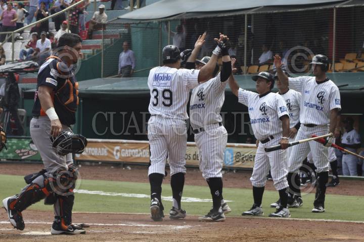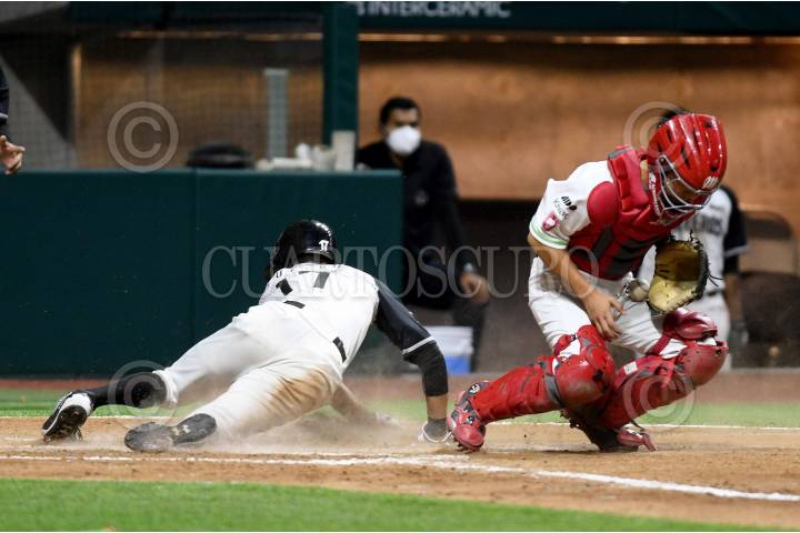 El jugador de los Guerreros de Oaxaca, Christian Lucero, anota una carrera en el encuentro.
